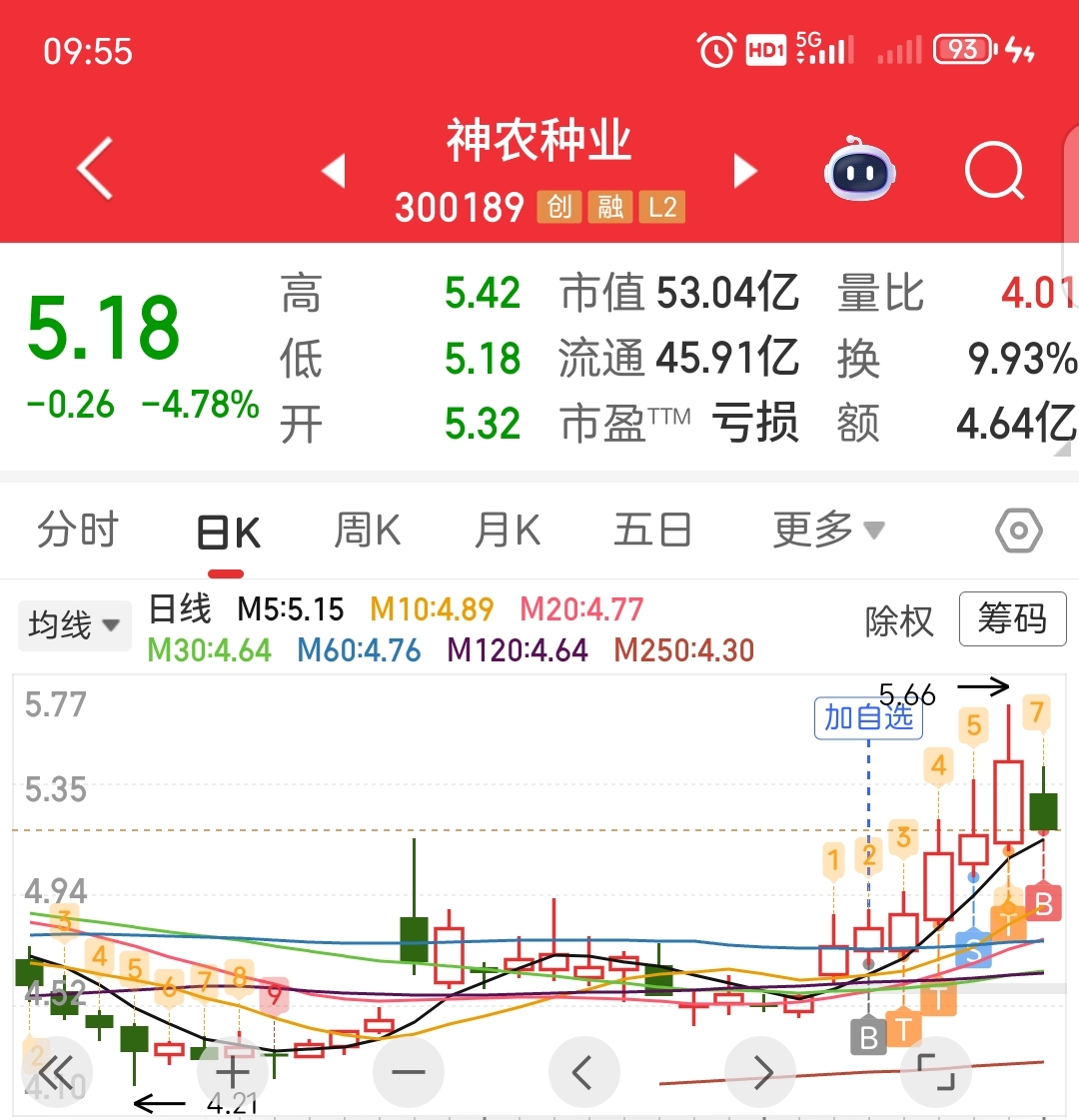 $神农种业(SZ300189)$ 5.18买回昨天t掉的仓位