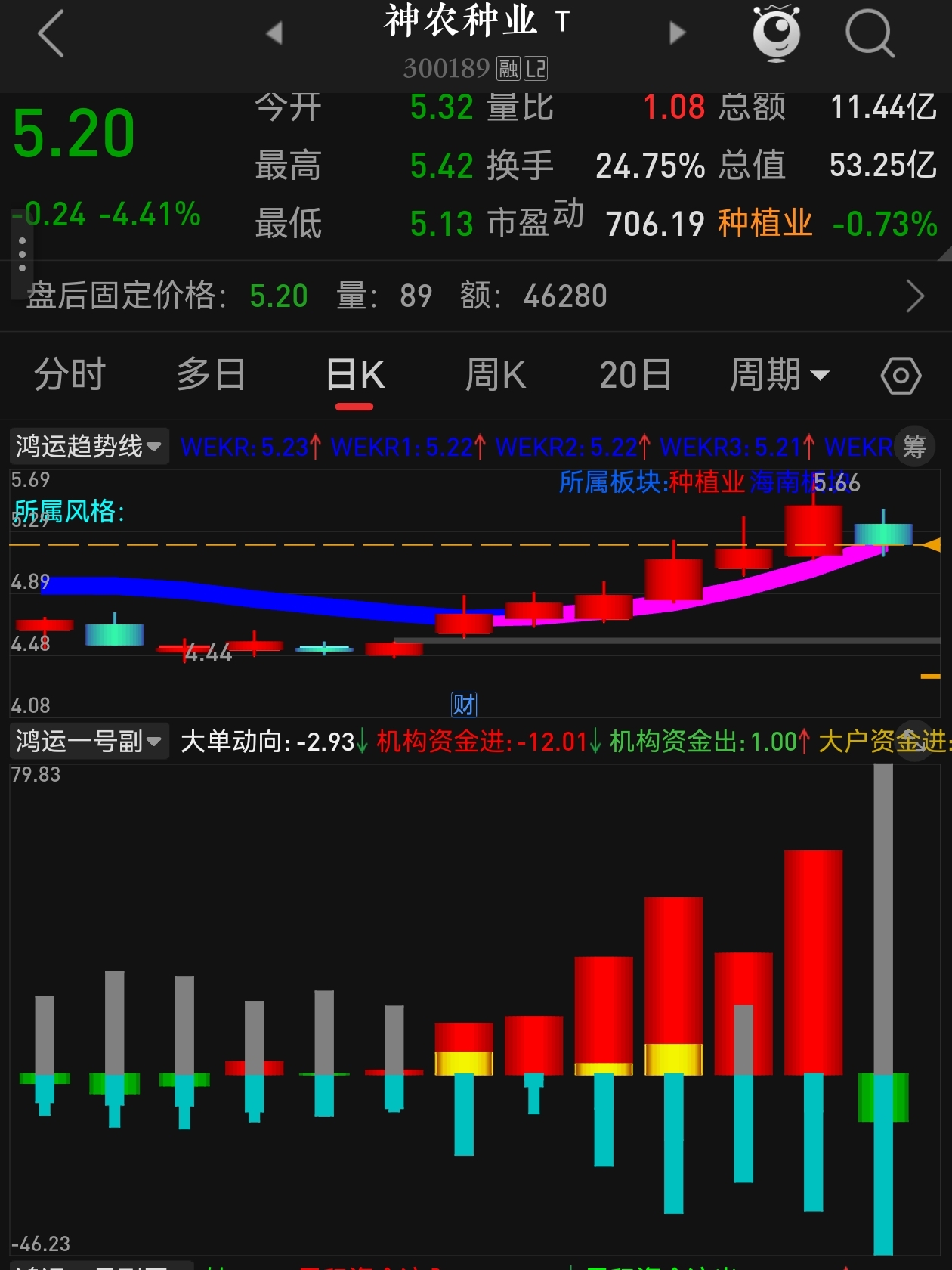 $神农种业(SZ300189)$ 今天主力出了很多,散户进来了很多,明天能涨吗?