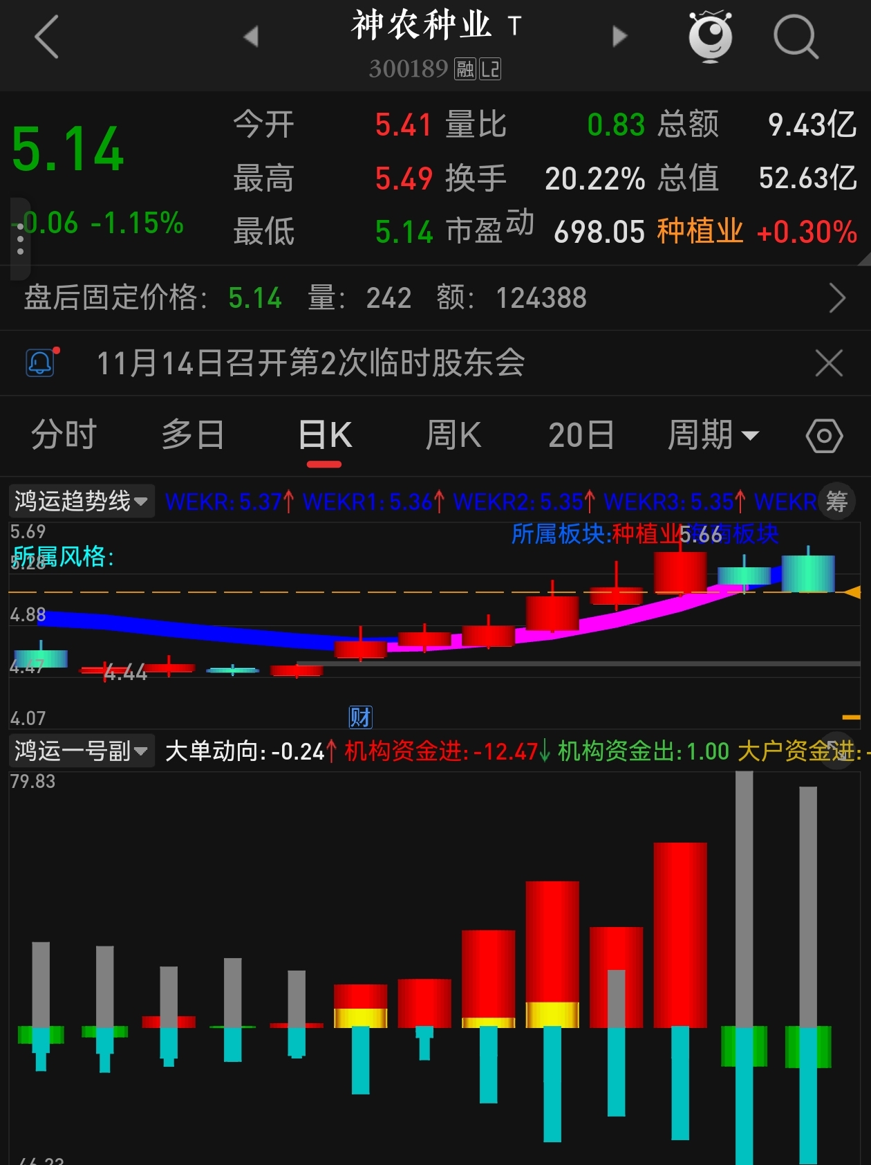 $神农种业(SZ300189)$ 已经连续两天散户大量进,庄家出。
