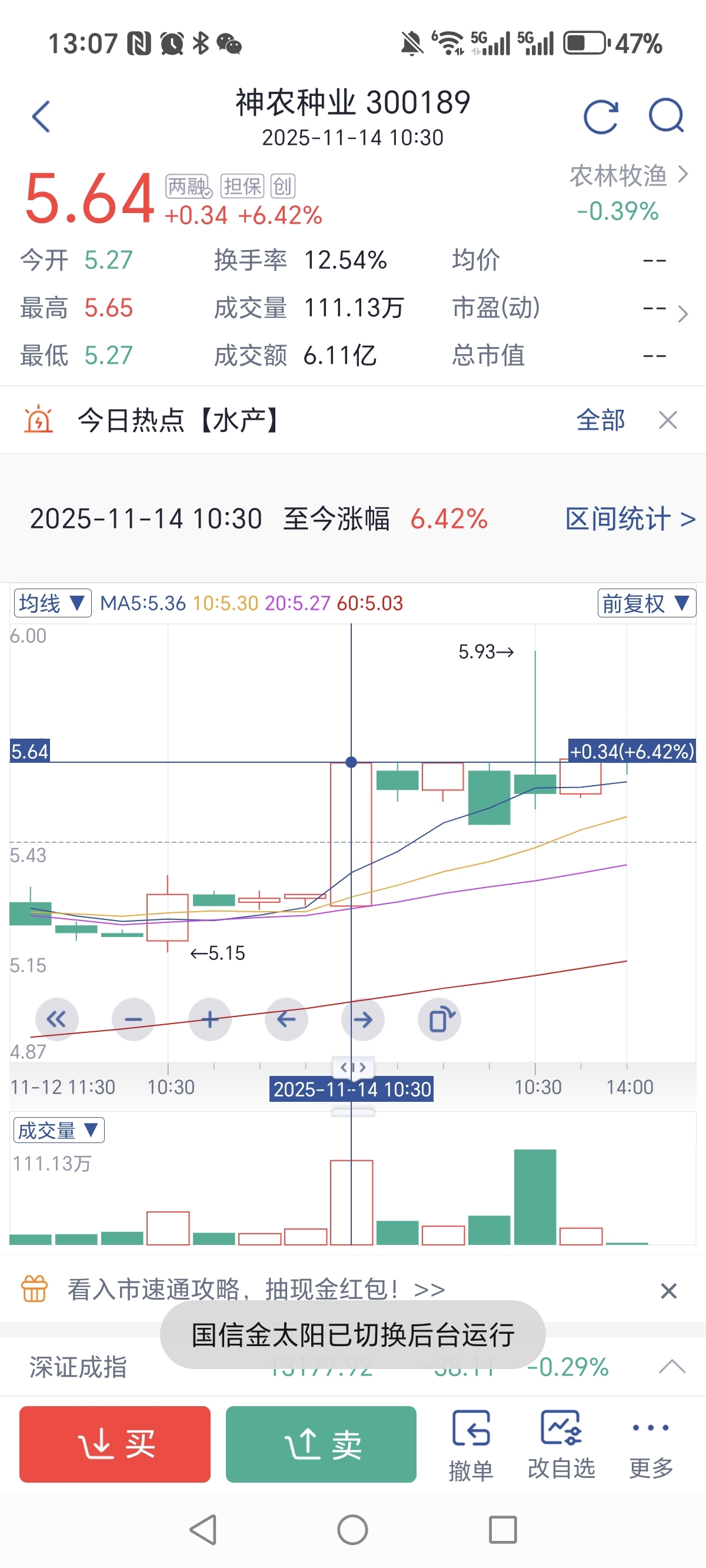 $神农种业(SZ300189)$ 此时有个大单突破6.65就爽了