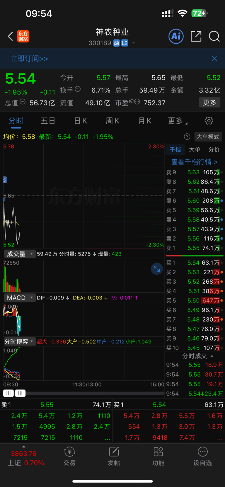 $神农种业(SZ300189)$ 我滴妈,落袋了~