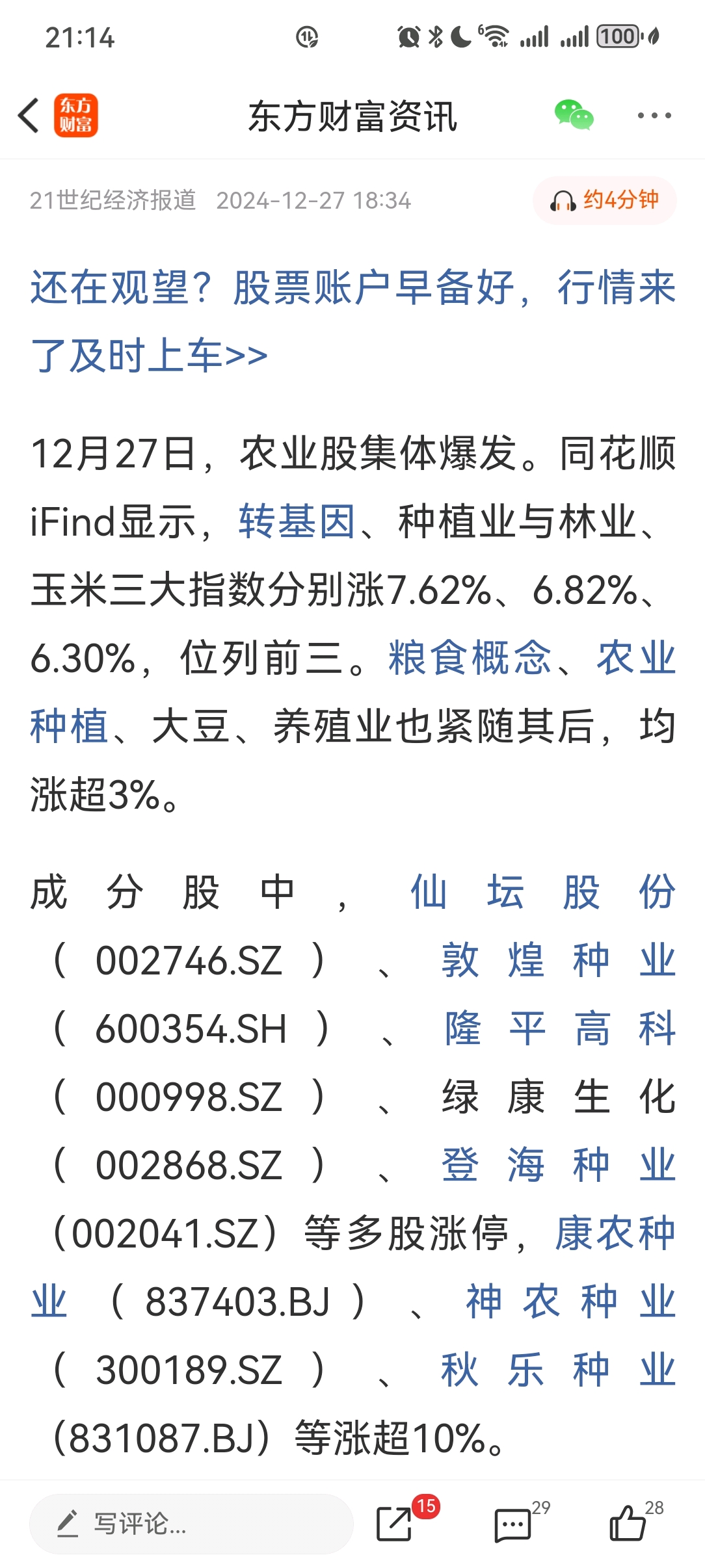 $神农种业(SZ300189)$ 前提是明天板块要大涨