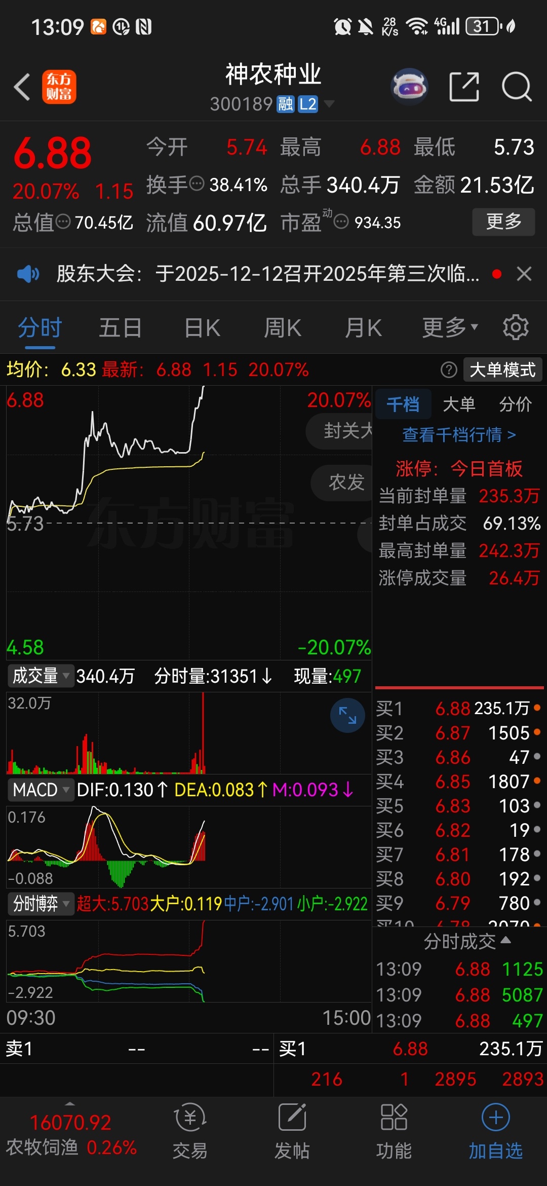 $神农种业(SZ300189)$ 海南封关在即,大盘不稳加上封关在即,海南板块大资金开始报团取暖拉升了,接力福建板块