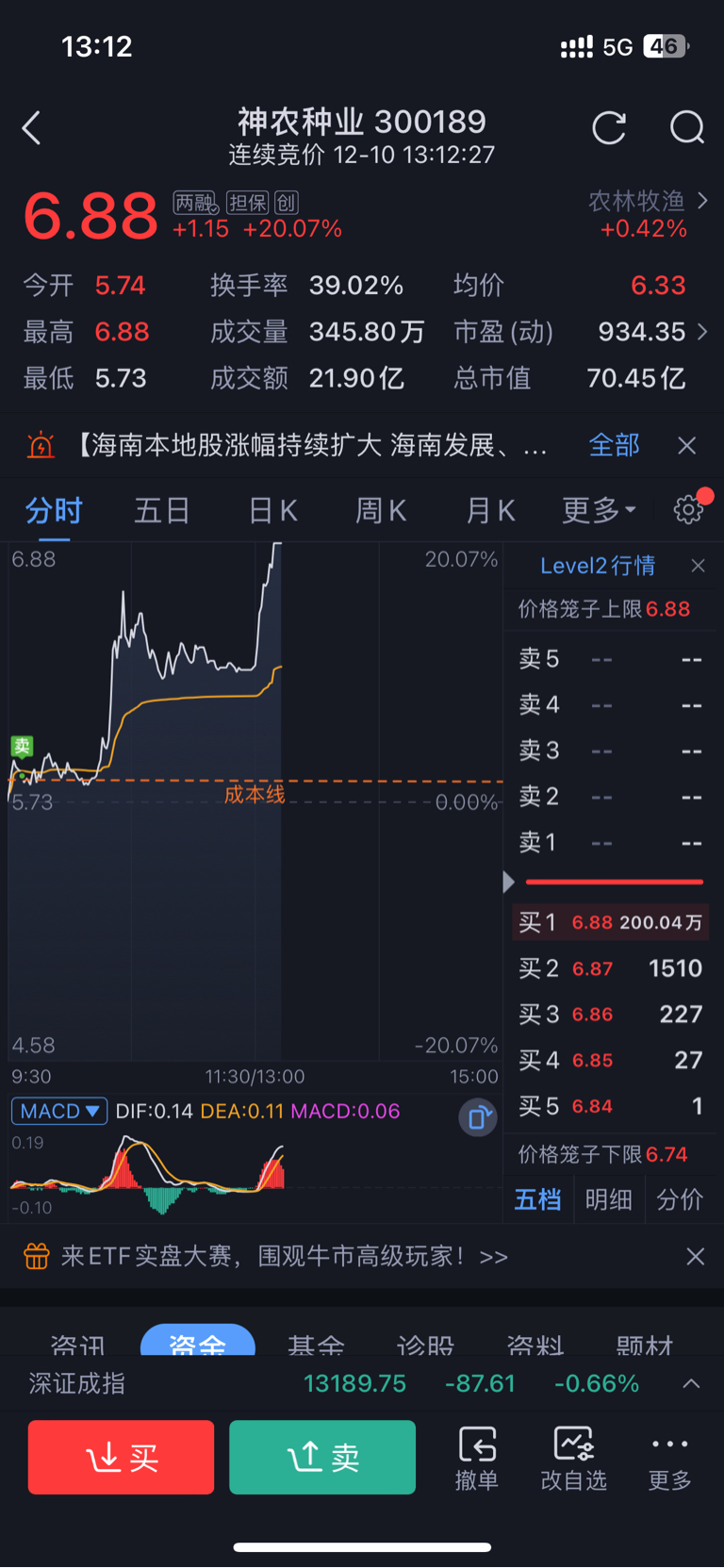 $神农种业(SZ300189)$ 前一刻我买了,草