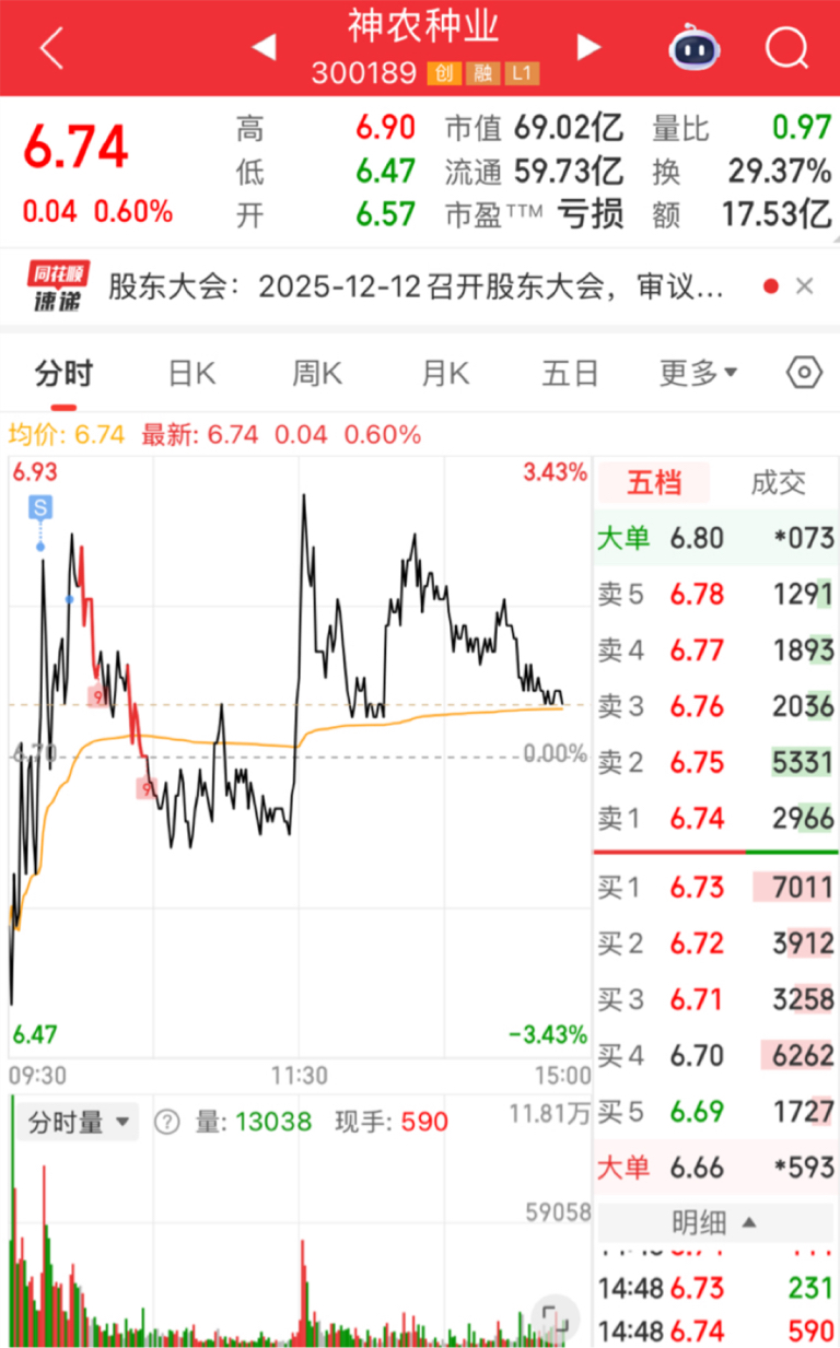 $神农种业(SZ300189)$ 喝了点汤,不亏就是赚