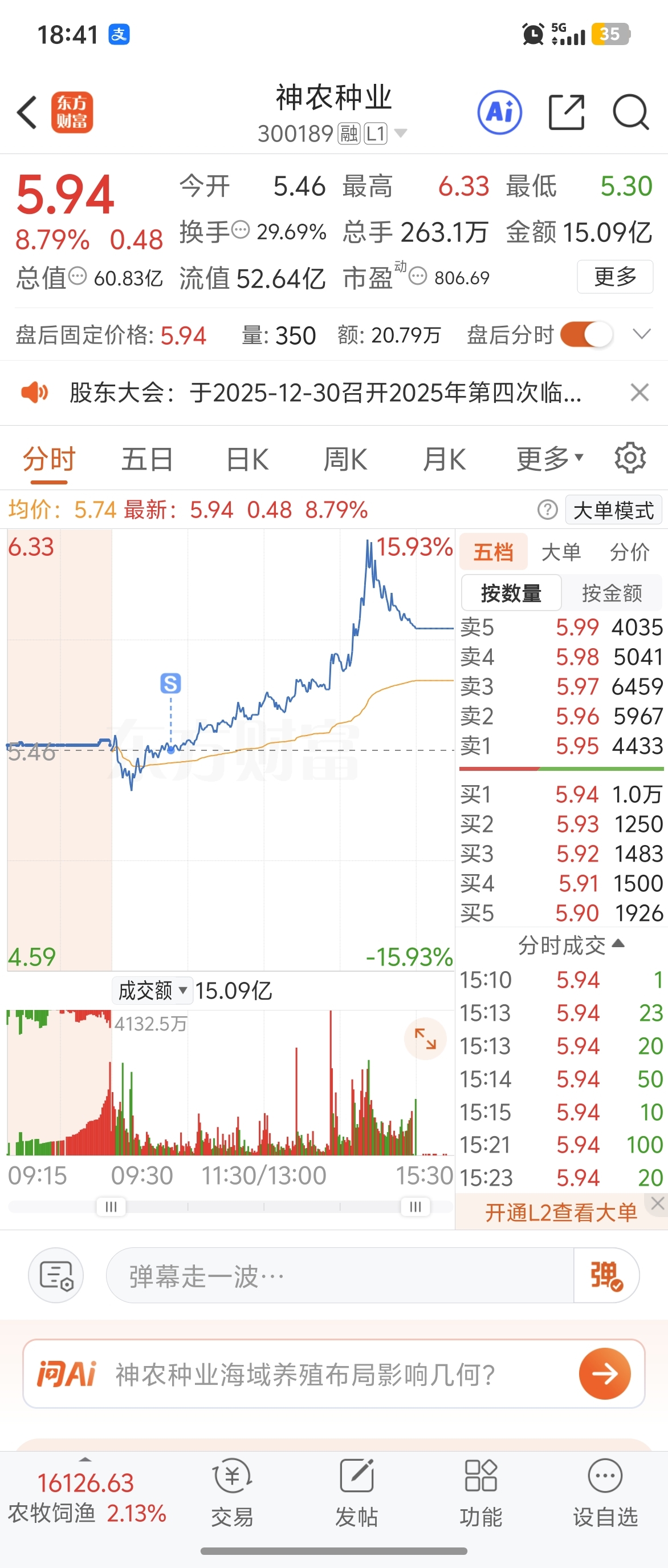 $神农种业(SZ300189)$ 套了三天,最低点卖了,神操作