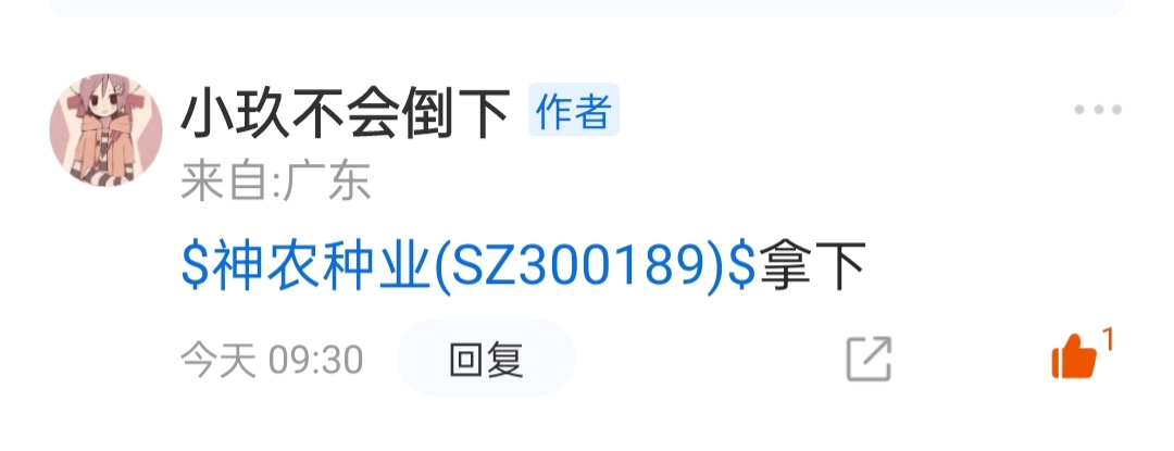 $神农种业(SZ300189)$ 漂亮,拿下了涨停大肉