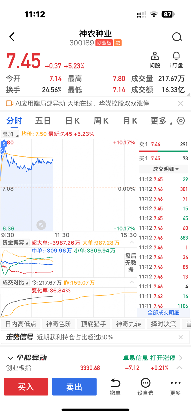 $神农种业(SZ300189)$ 还能7块以下接回来么