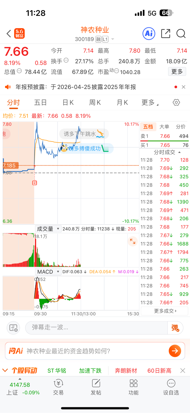 $神农种业(SZ300189)$ 不会是盘中富贵吧