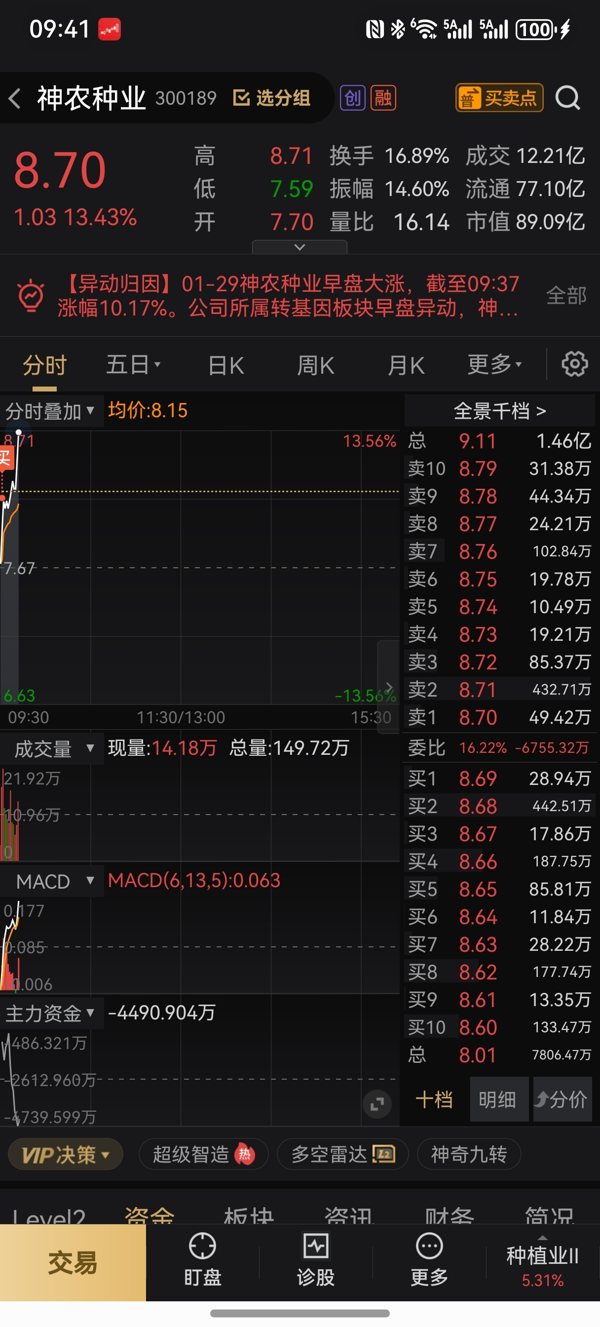 $神农种业(SZ300189)$ 上车干干干