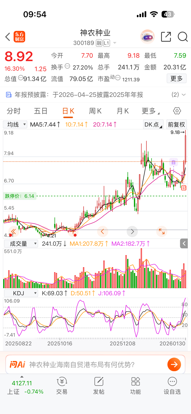 $神农种业(SZ300189)$ 外面不太好,拿住抱团 看前高