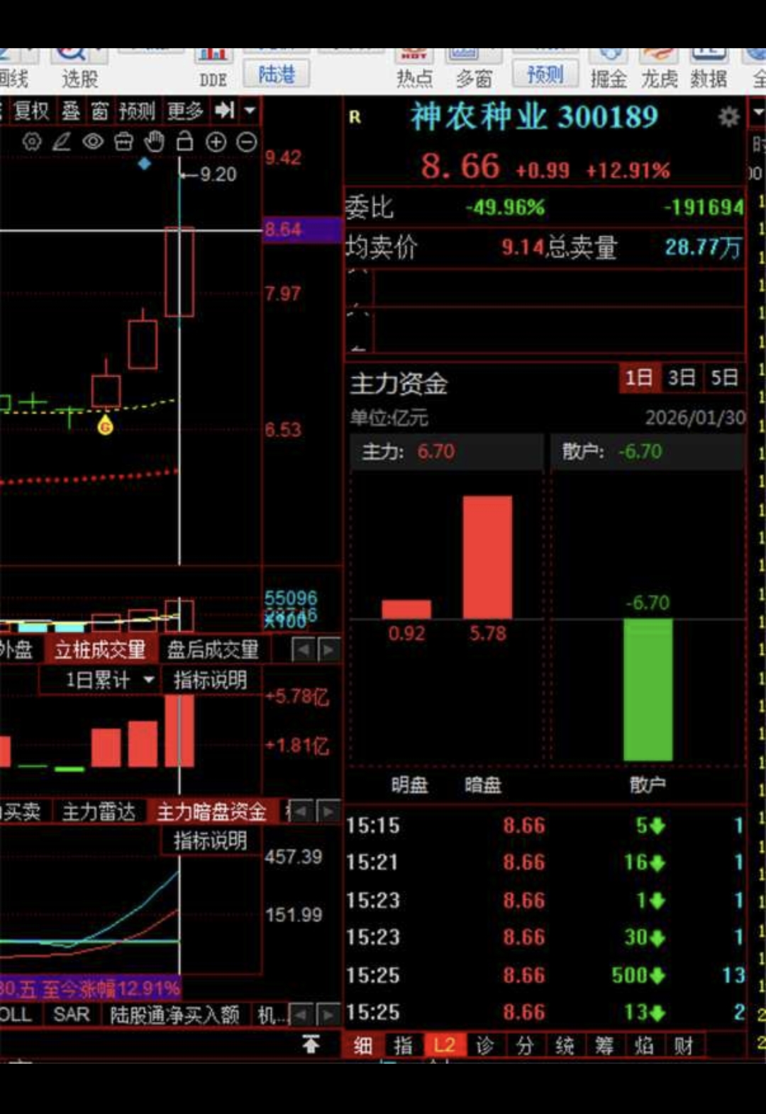 $神农种业(SZ300189)$ 突破前高不可能就为了给前面套牢的散户接盘吧,看看暗盘主力资金流入那么多