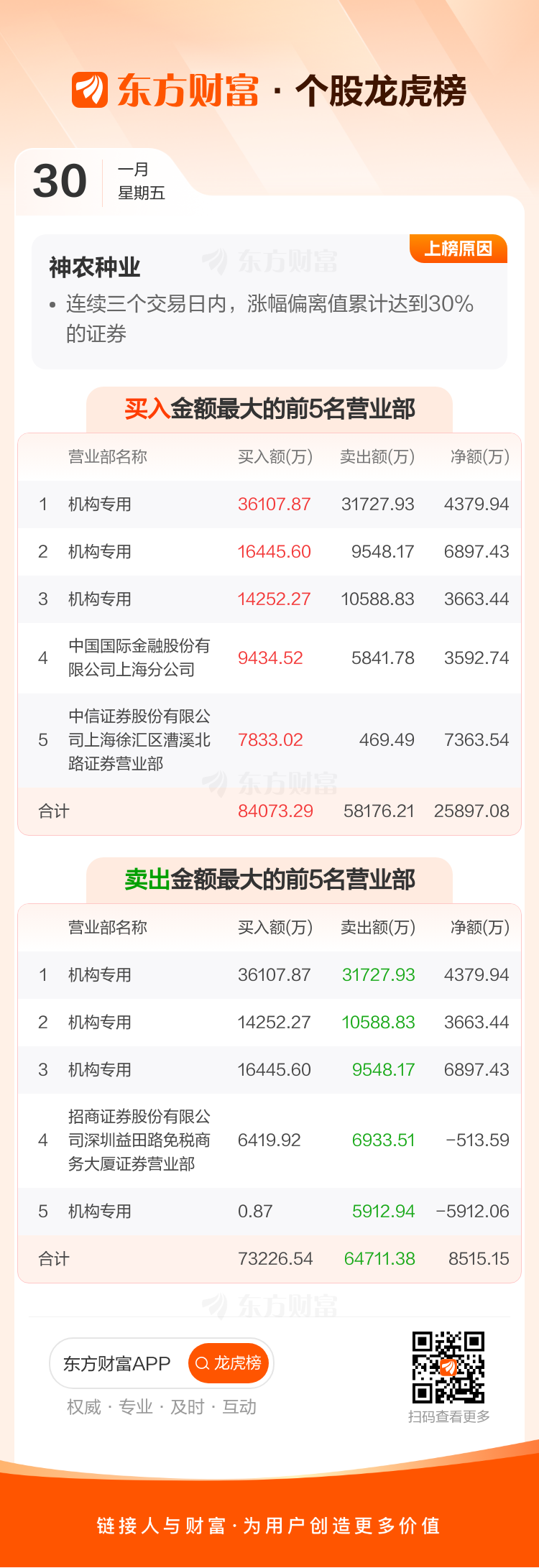 神农种业(300189)龙虎榜数据(01-30)