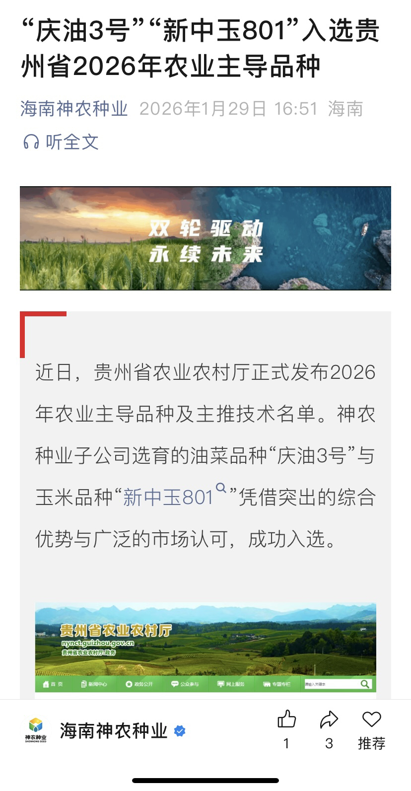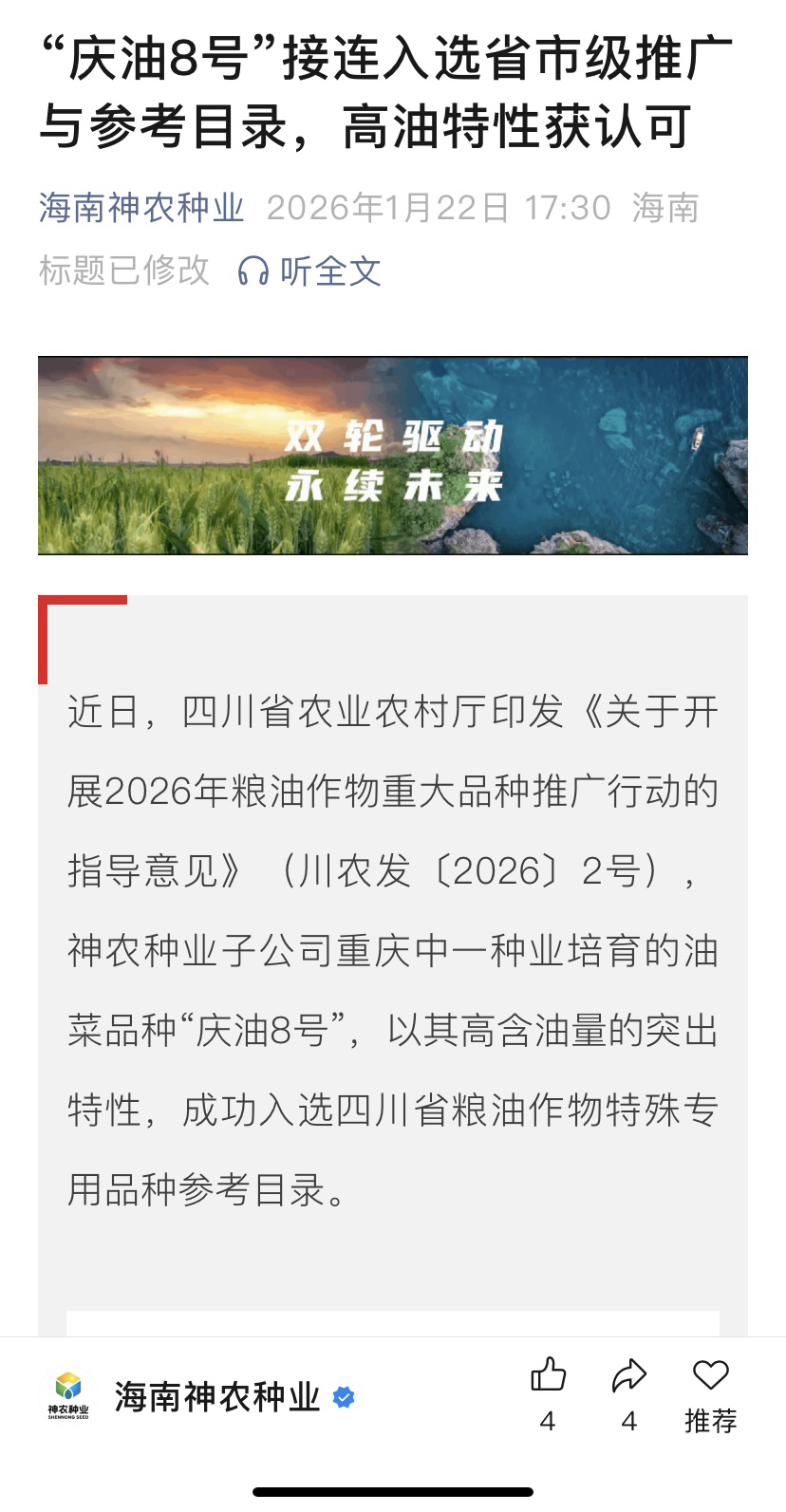 $神农种业(SZ300189)$