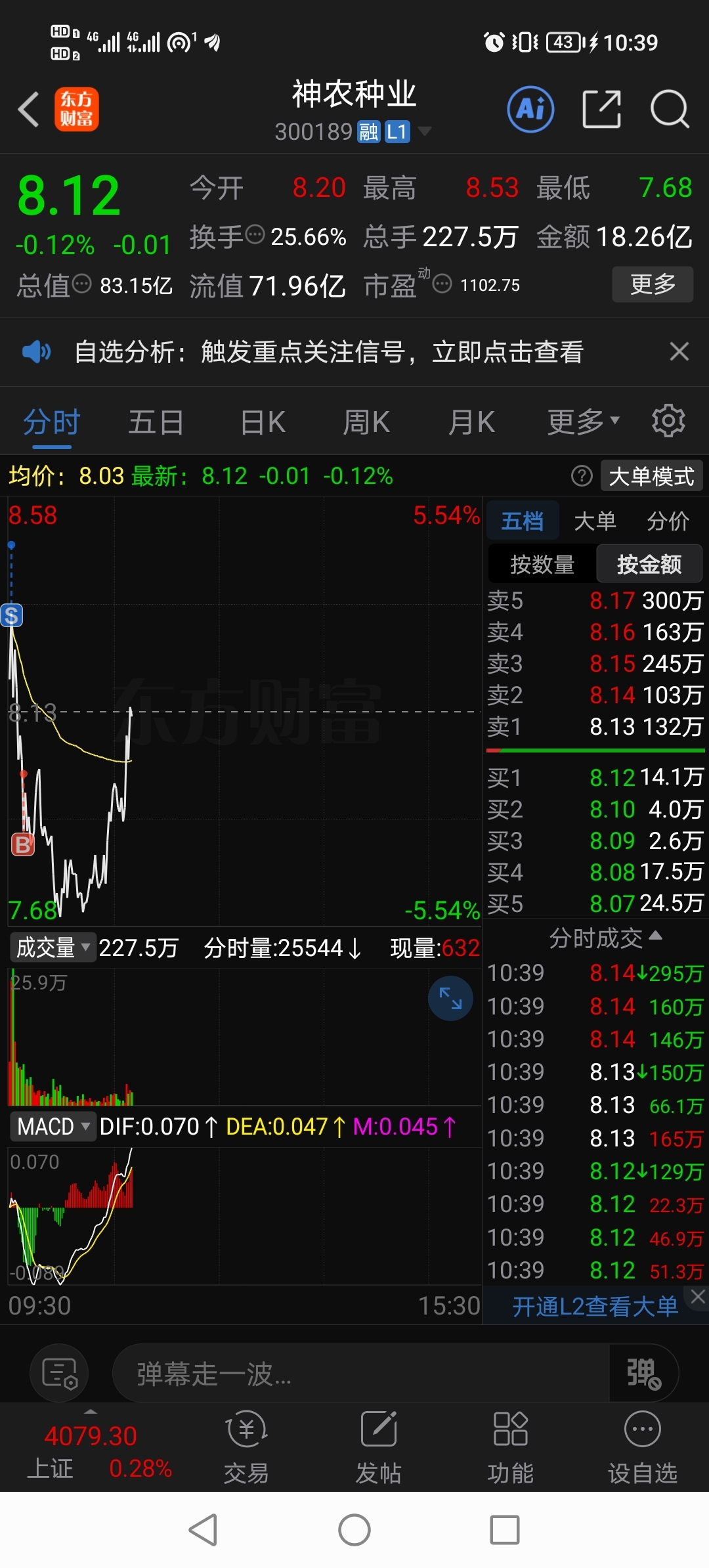 好在开盘五个多点卖了,水下两个点接回的我今天随你震荡