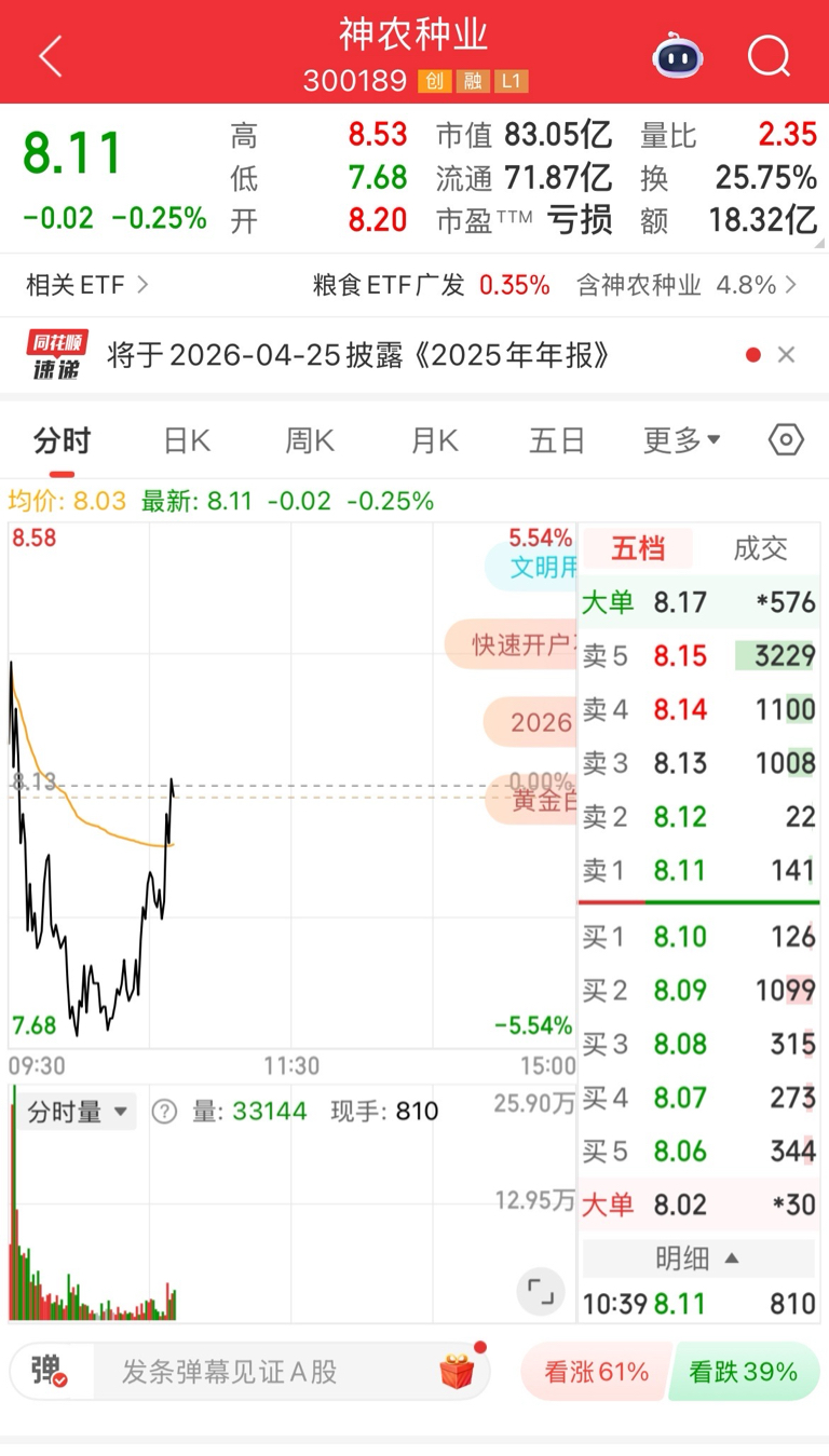 神农种业逢低关注$神农种业(SZ300189)$