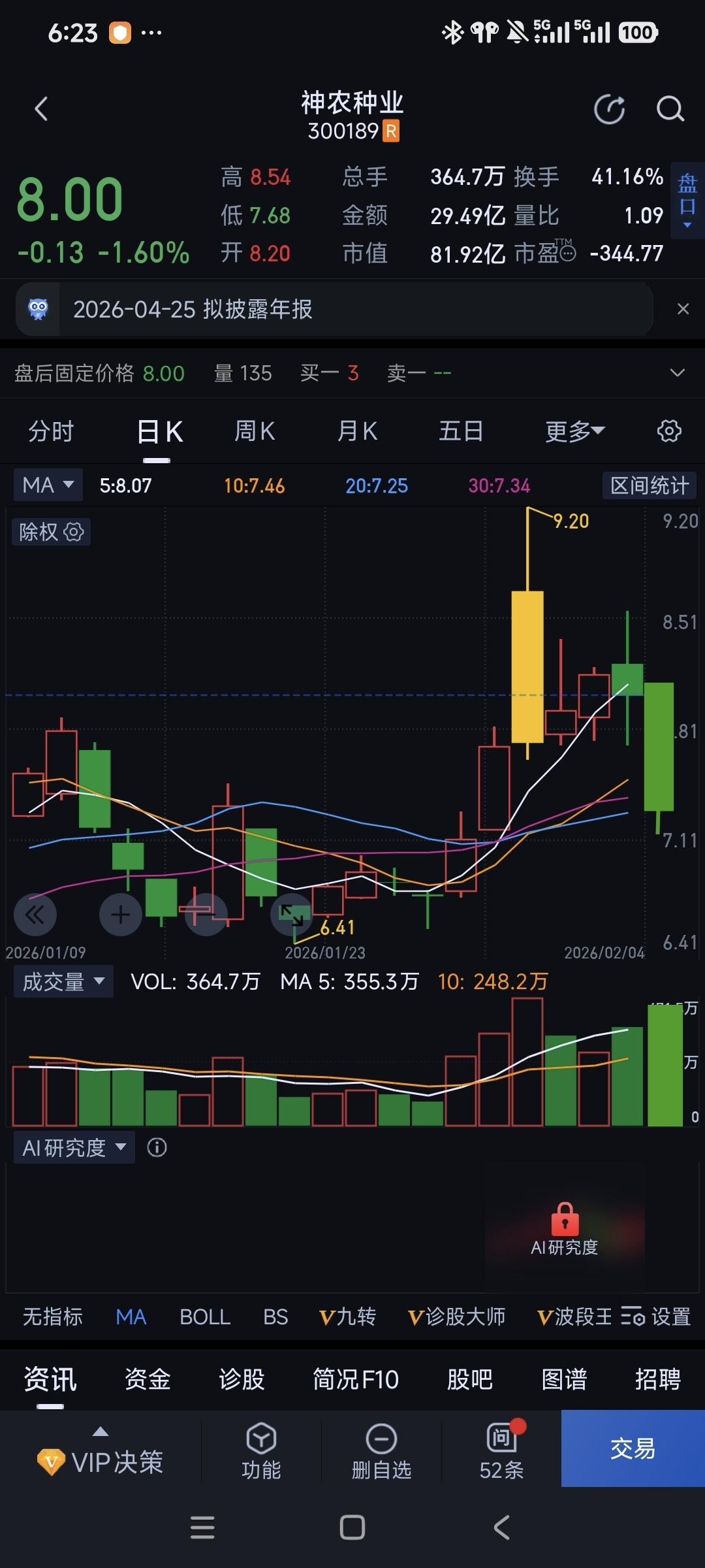$神农种业(SZ300189)$ 2.5日走势