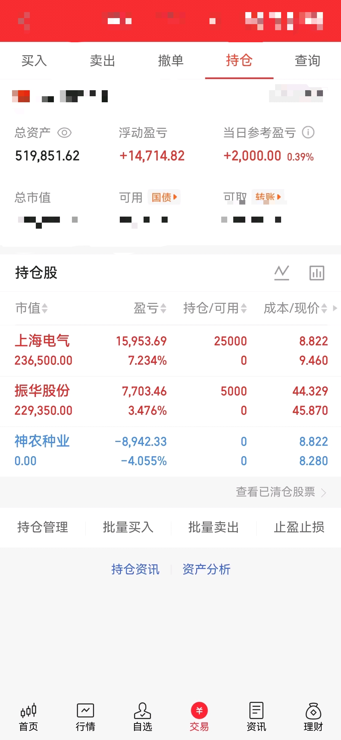 . 持仓:$上海电气(SH601727)$ $振华股份(SH603067)$