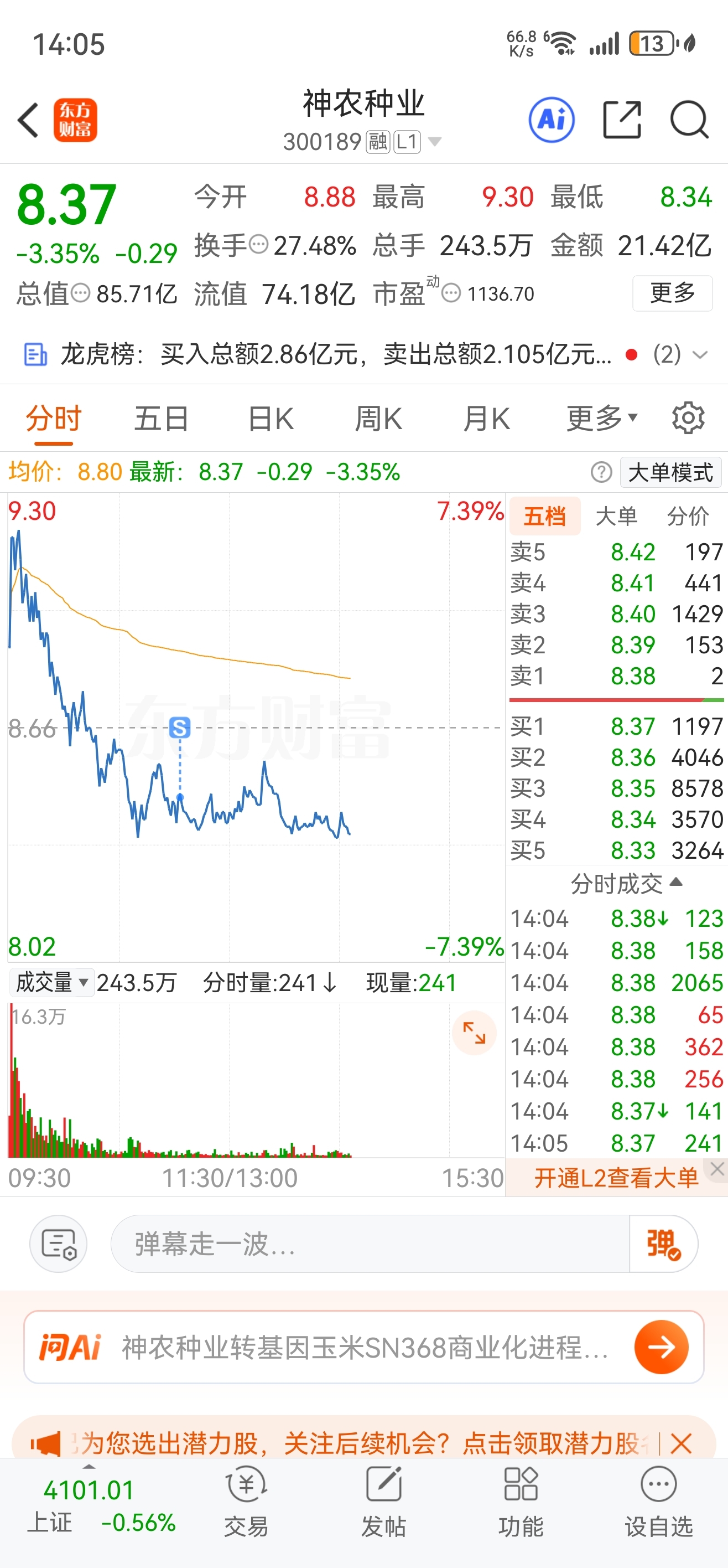$神农种业(SZ300189)$ 7个点没卖,跌两个点卖了