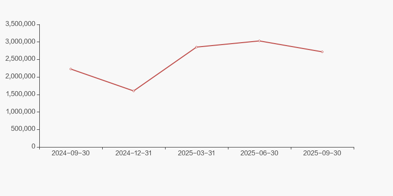 截至2025年9月30日,公司最新总股本为3.2亿股,其中流通股本为2.21亿股。户均持有流通股数量由上期的9837股上升至1.35万股,户均流通市值27.77万元。