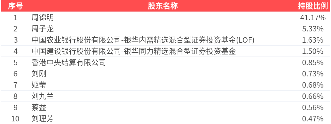 公司股东户数为1.64万户,前十大股东持股数量为1.71亿股,占总股本比例为53.57%,前十大股东持股情况如下: