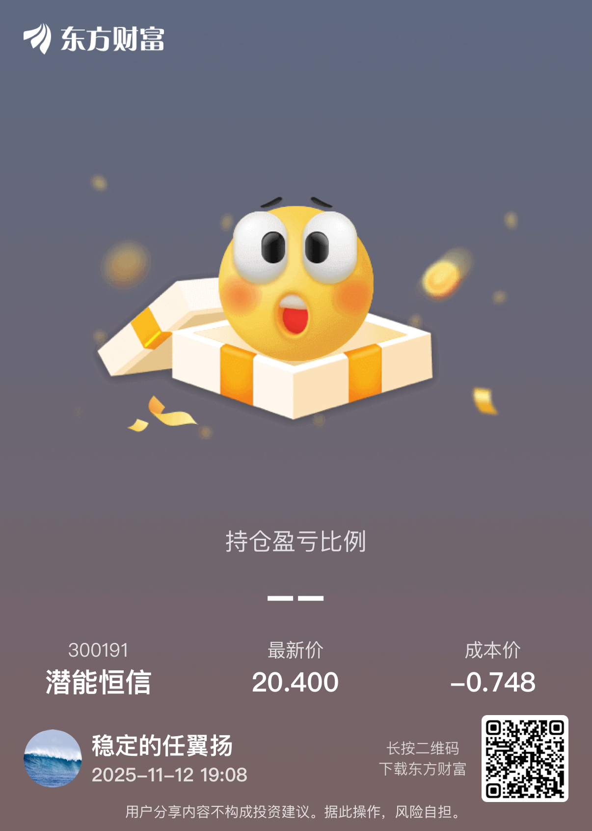 $潜能恒信(SZ300191)$ 留个底仓看明年