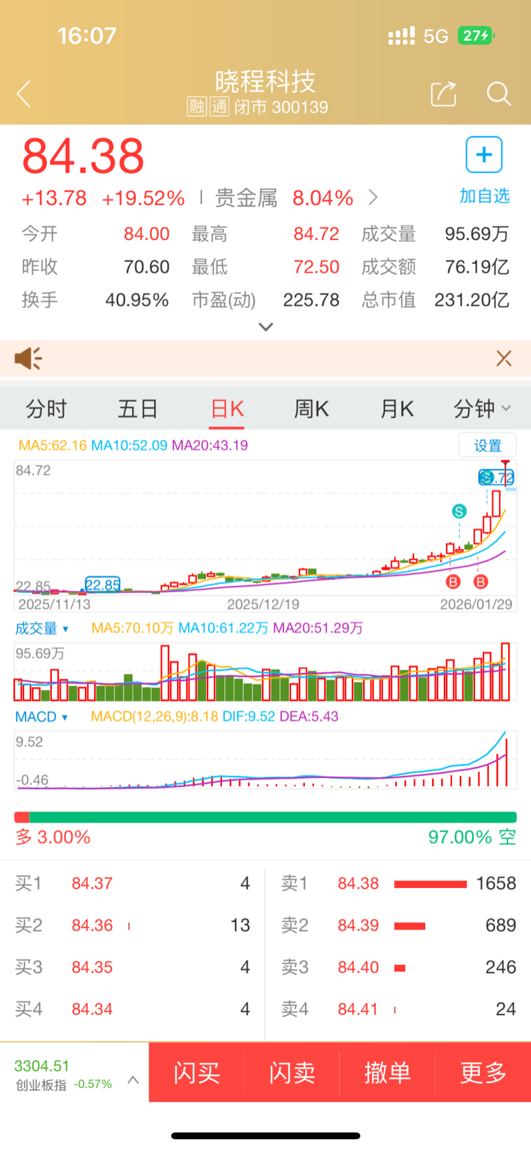 前天震荡洗盘的时候把我洗下车了,昨天大涨不敢追。今天早上由于之前把晓程卖飞的缘故