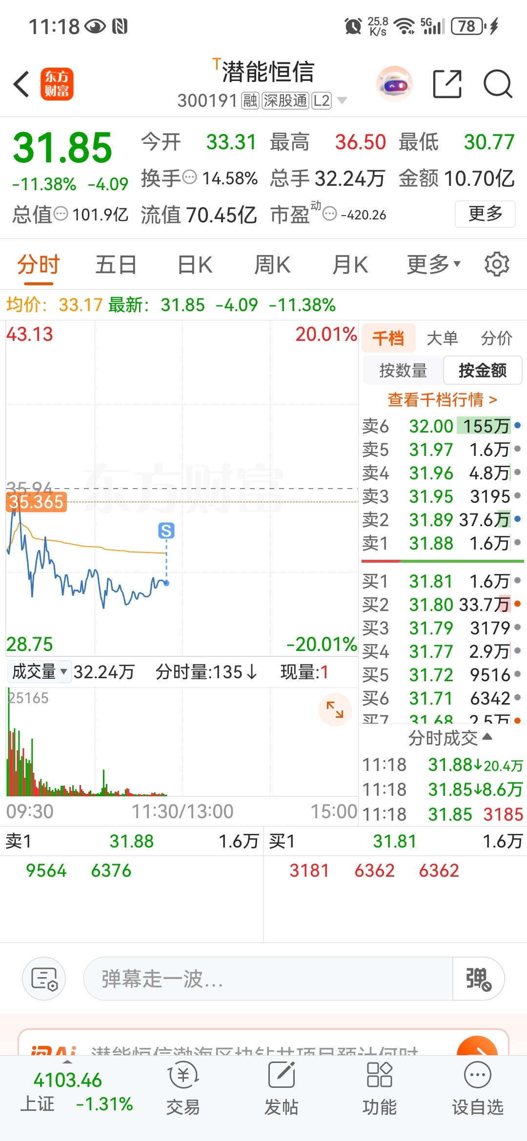$潜能恒信(SZ300191)$ 一卖就拉?