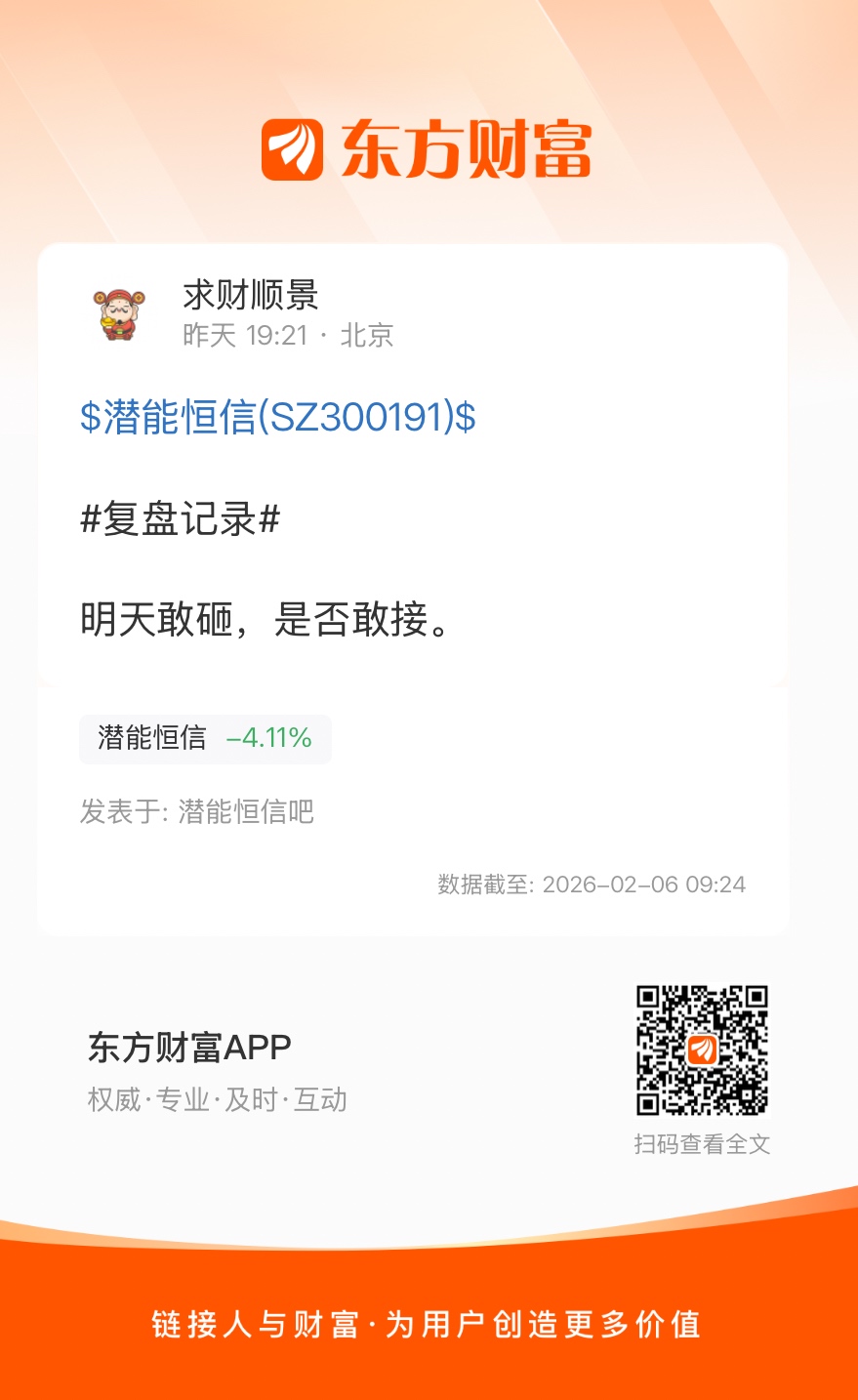温馨提示: 1.根据《证券法》规定,禁止编造、传播虚假信息或者误导性信息,扰乱证券市场;2.用户在本社区发表的所有资料、言论等仅代表个人观点,与本网站立场无关,不对您构成任何投资建议。用户应基于自己的独立判断,自行决定证券投资并承担相应风险。《东方财富社区管理规定》