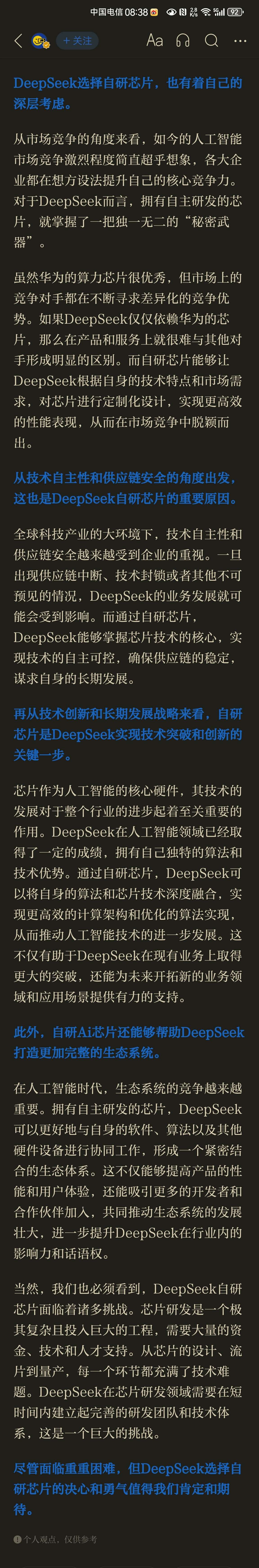 从deepseek自研芯片的考量,看中昊芯英路线的正确性