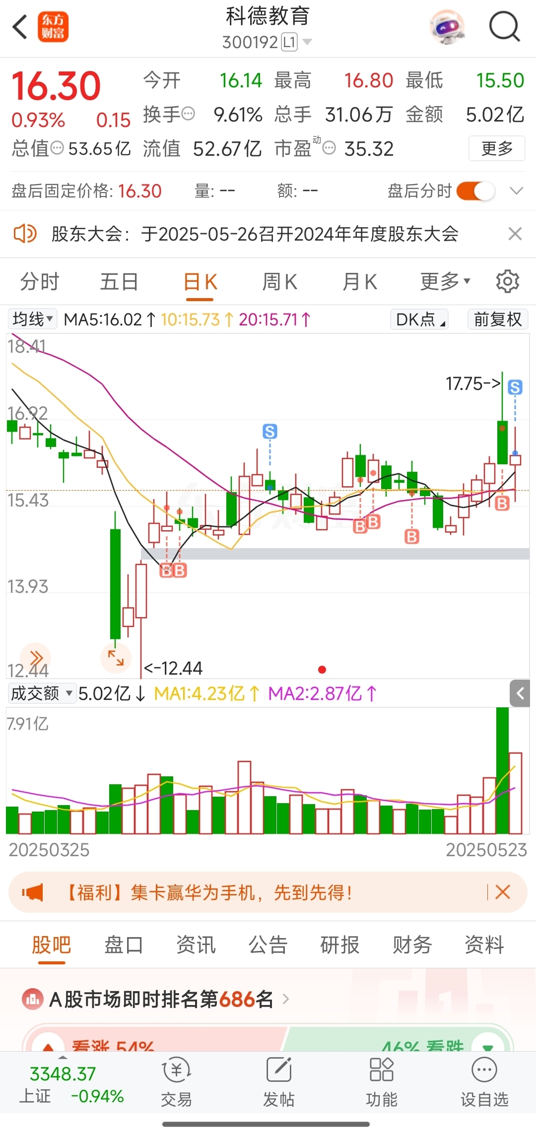 $科德教育(SZ300192)$ 减半仓,成本15.7,昨天追高了