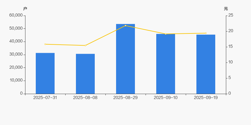 2025年7月31日至今,公司股东户数显著增长,区间涨幅为44.92%。2025年7月31日至2025年9月19日区间股价上涨22.33%。