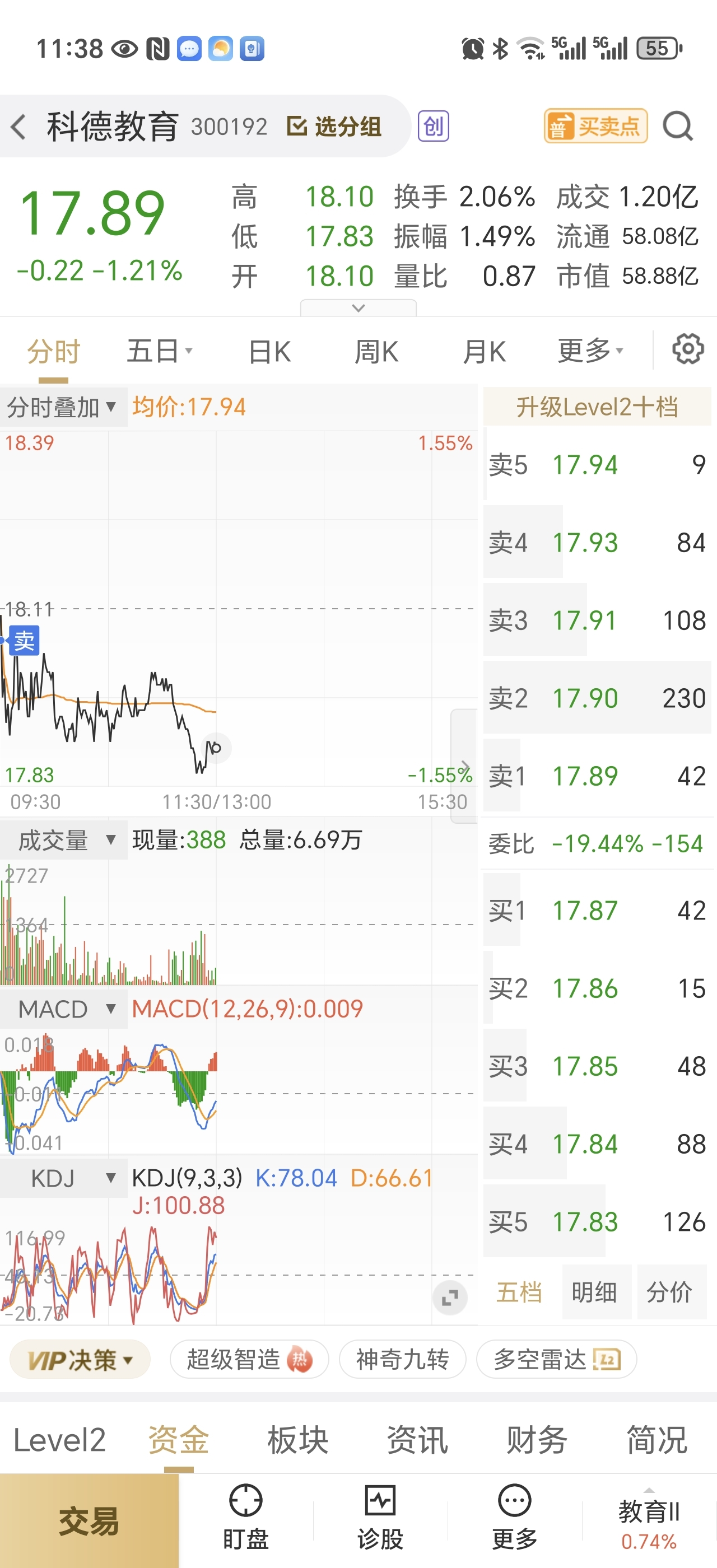 $科德教育(SZ300192)$ 早上跑了一半增加利润垫,下午再择机买回去,这票不做T顶不住,很难红两天,暂时得靠其他票赚点钱来补贴这边