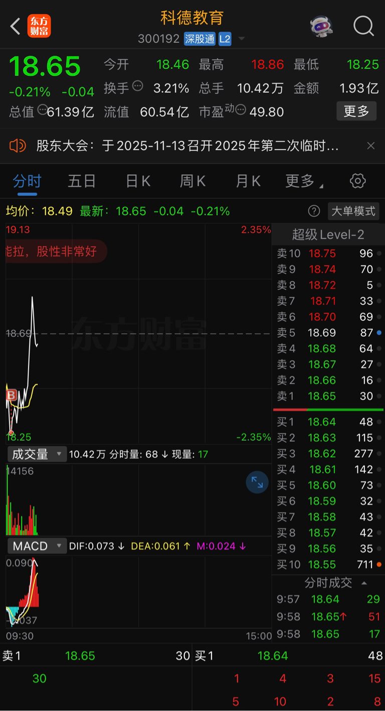 $科德教育(SZ300192)$ 昨天19全仓出,今天18.3全仓接回,爽歪歪
