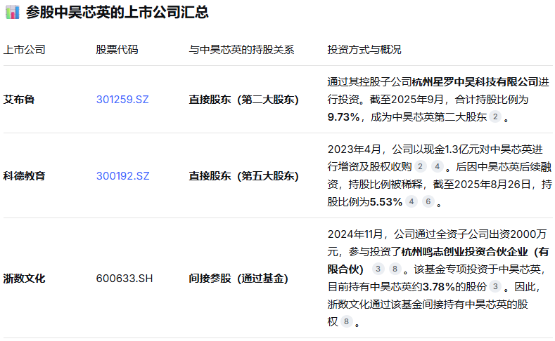 参股中昊芯英的上市公司汇总