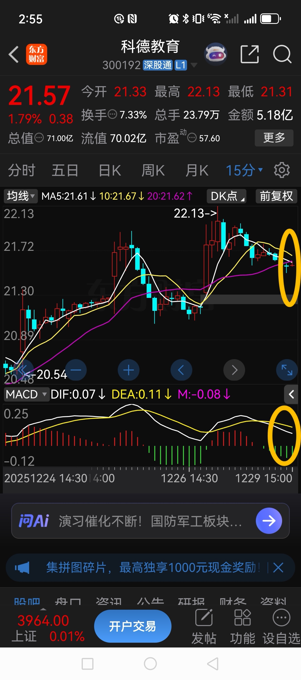 $科德教育(SZ300192)$ 15分时显示,明天大绿