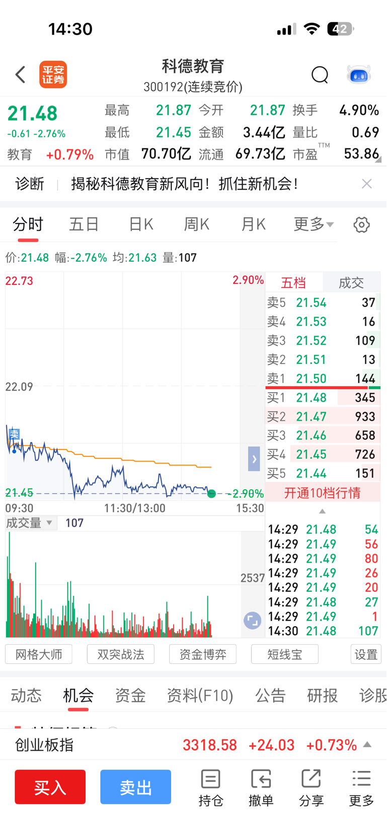 $科德教育(SZ300192)$ 等下尾盘我再来,明天赚几个点就跑