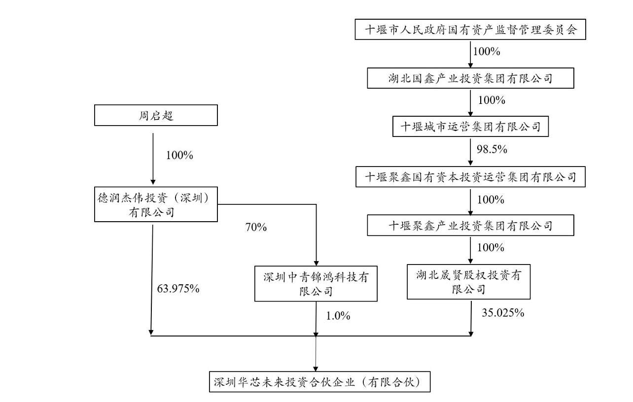 记者注意到,华芯未来由周启超间接持股63.98%,持股35%的股东背后有十堰市人民政府国有资产监督管理委员会的身影。此外,华芯未来成立于2025年7月23日,其设立时间与前次易主计划的终止节点紧密相连,经营范围包括以自有资金从事投资活动等。