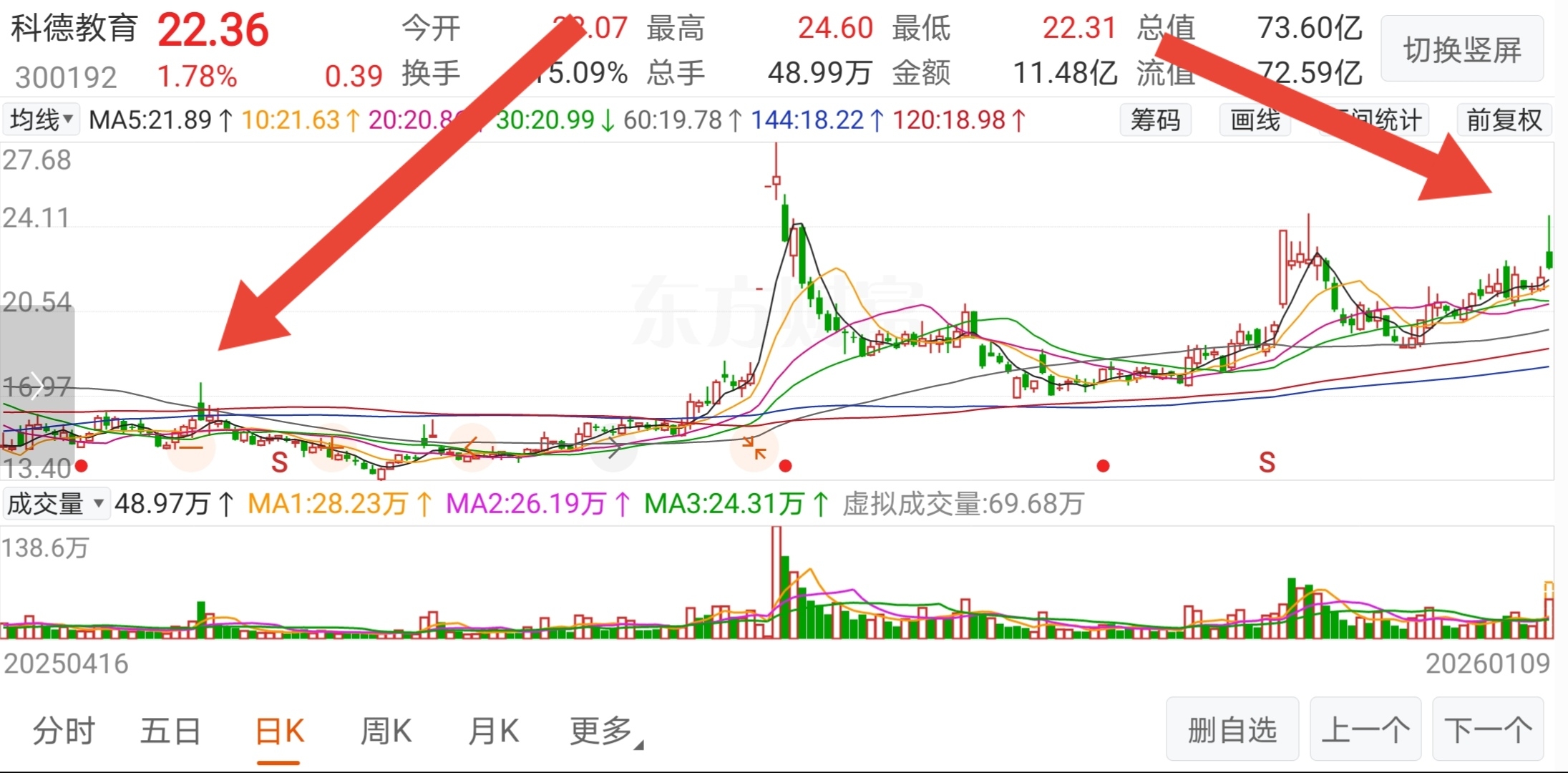 $科德教育(SZ300192)$ $艾布鲁(SZ301259)$ $天普股份(SH605255)$ 科德教育去年5月底第一次卖公司和今后走势对照。第一天都是高开低走,超长上影大绿线。