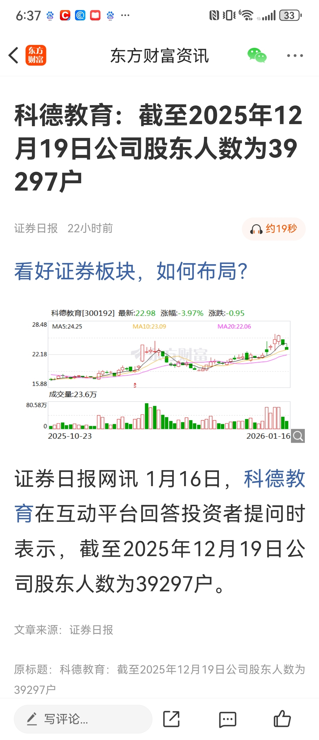 $科德教育(SZ300192)$ 投资者是会提问的,从回答股东数下降和散户线下降,说明从12月16日以来,股价拉升,散户是逐步减少的,筹码越来越集中
