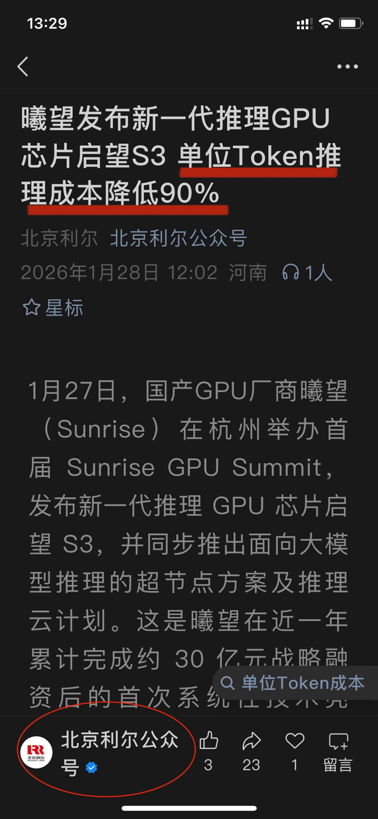 $科德教育(SZ300192)$ 曦望发布新一代推理GPU芯片启望S3 单位Token推理成本降低90%