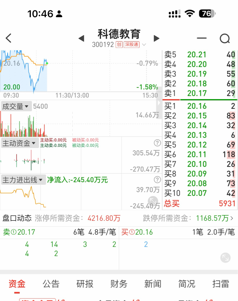 $科德教育(SZ300192)$ 今天跌停只要1200万