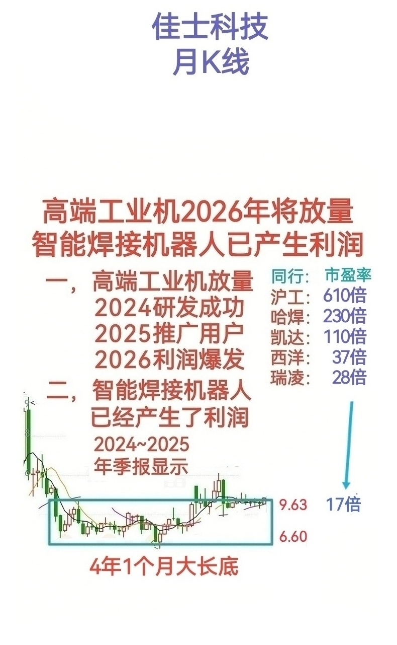 小心这么走:横有4年1个月,换手18遍,涨幅+46%,业绩第一估值垫底,高端机利润将爆发,智能焊接机器人已产生利润。