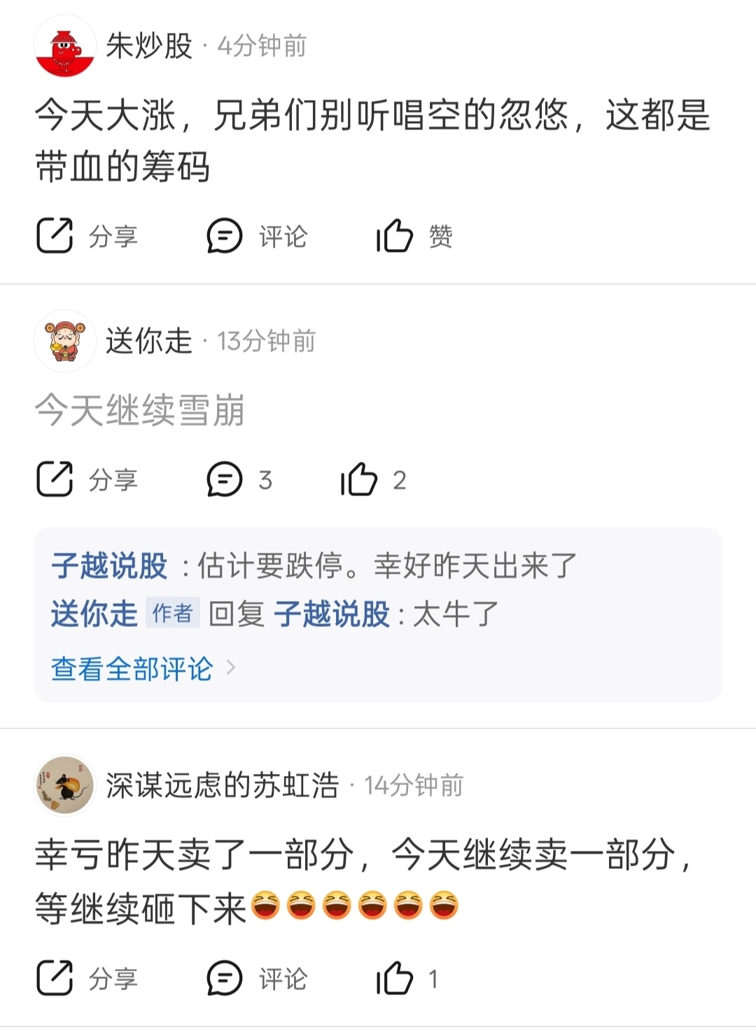 温馨提示: 1.根据《证券法》规定,禁止编造、传播虚假信息或者误导性信息,扰乱证券市场;2.用户在本社区发表的所有资料、言论等仅代表个人观点,与本网站立场无关,不对您构成任何投资建议。用户应基于自己的独立判断,自行决定证券投资并承担相应风险。《东方财富社区管理规定》