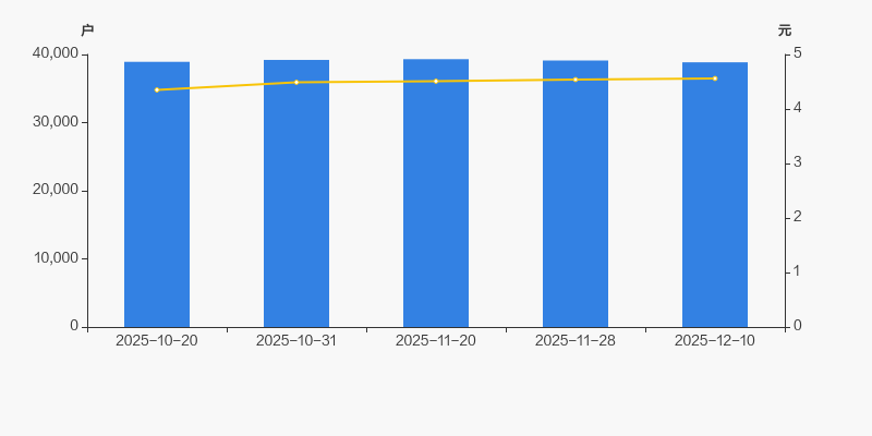 2025年10月20日至今,公司股东户数有所下降,区间跌幅为0.18%。2025年10月20日至2025年12月10日区间股价上涨4.83%。