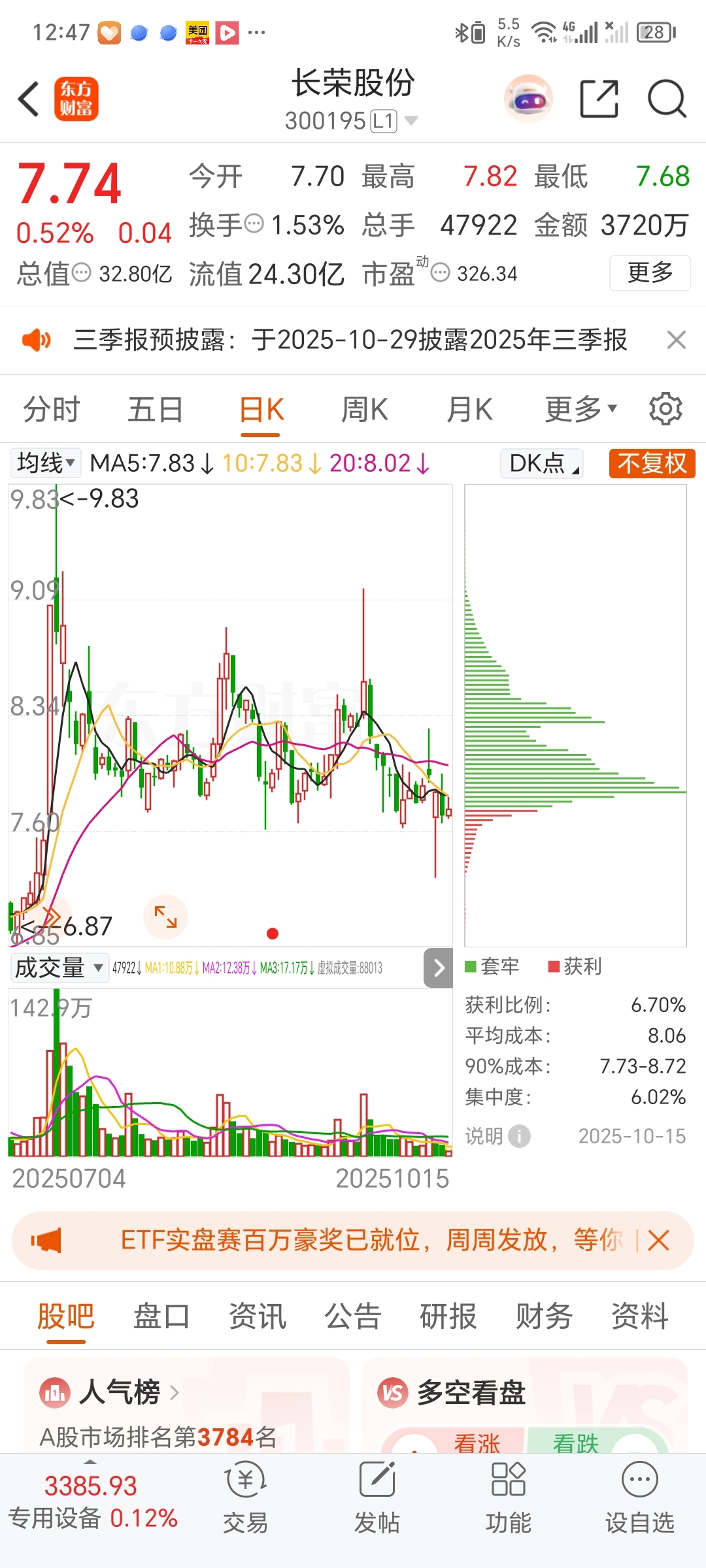 $长荣股份(SZ300195)$ 长荣一直在箱体振荡区间主力为清洗浮䓓长线机会突显!