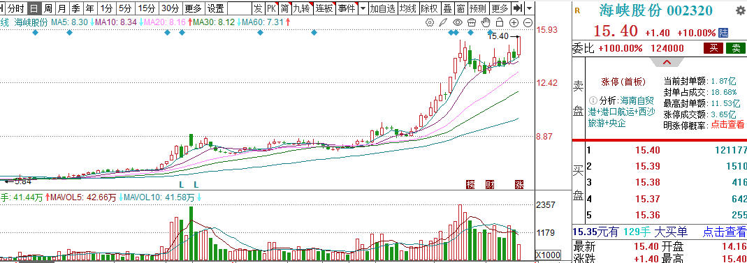 海马汽车:太强了,毫无疑问海马已经成为了海南自贸区和马字辈最强核心龙头。昨天四板封得非常干脆不拖泥带水,35万手大单牢牢封住。龙虎榜显示北向和机构持续流入,也给后面行情打了强心针。昨天没有量,大家都不愿意抛说明一致看涨。今天还会是大幅高开,一般主线龙头走出了四板,后面基本都是能冲击六板以上。所以没有开板前都不用研究是否出来,继续格局为主。