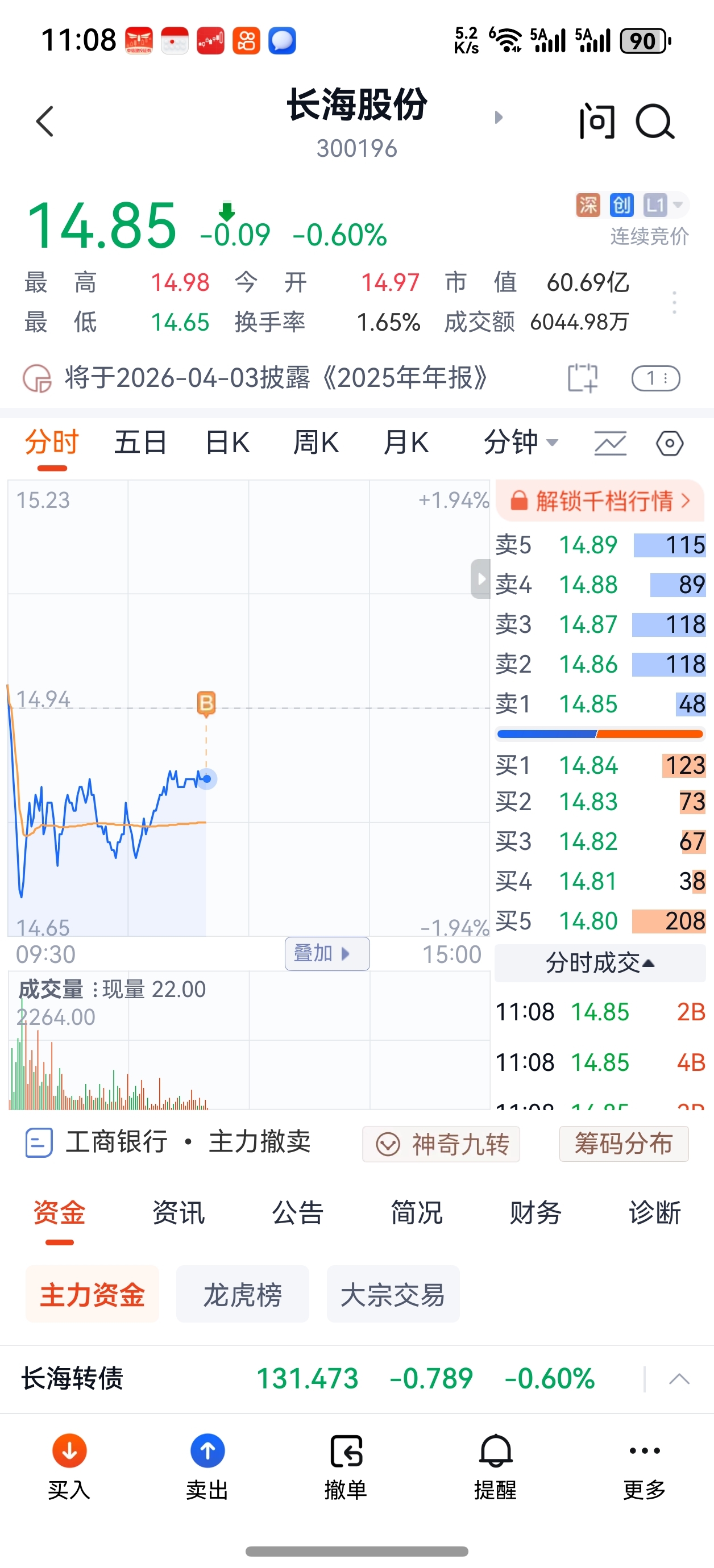 $长海股份(SZ300196)$ 加了0.3成,不加,他不下来,哈哈
