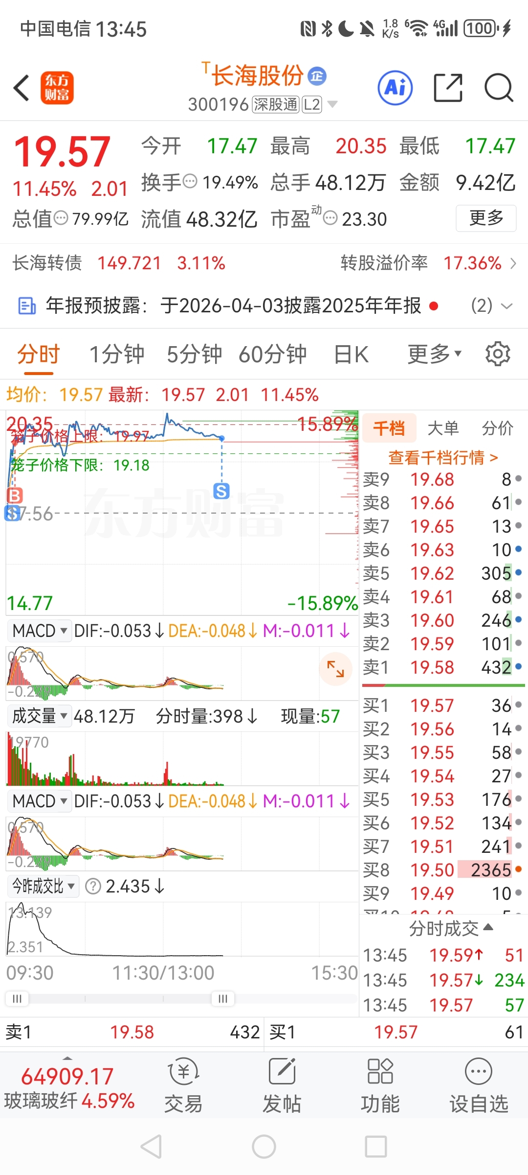 $长海股份(SZ300196)$ 下午破均线,那是脑子有包。所以先撤了,你们玩
