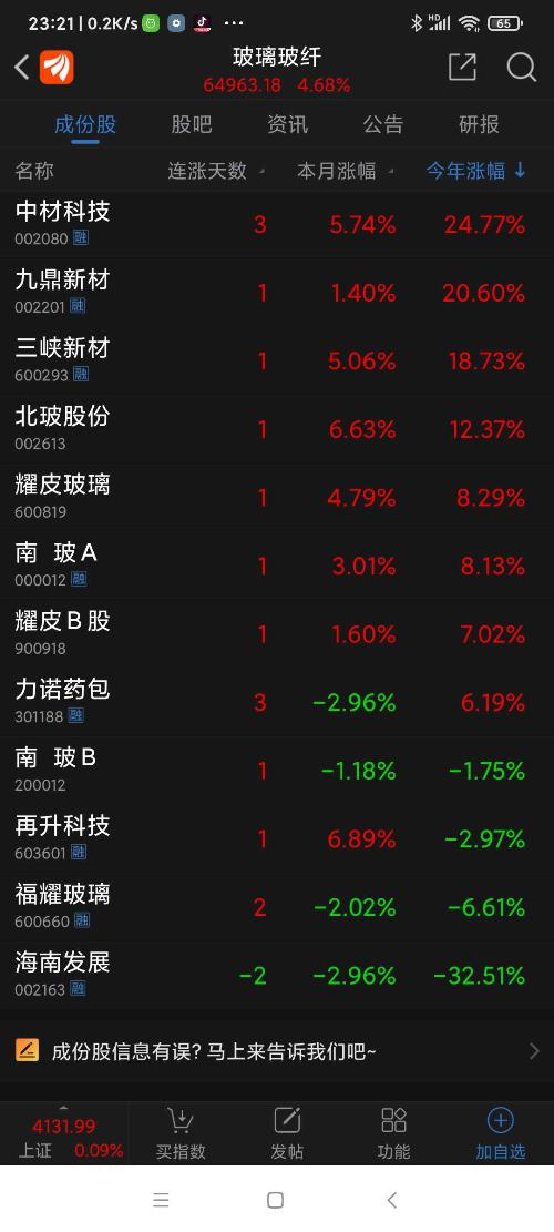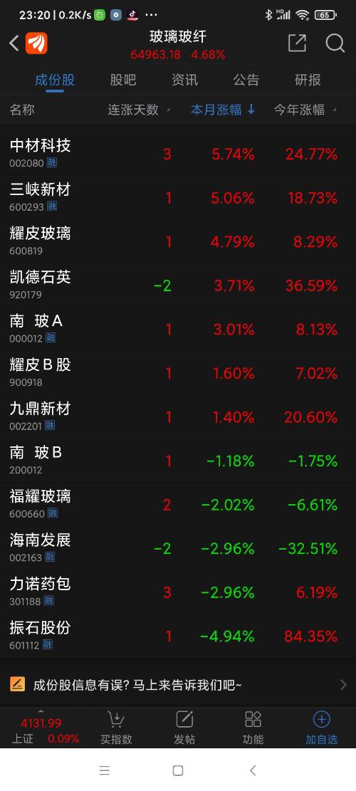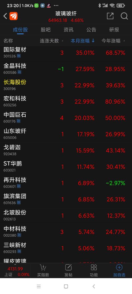 玻璃玻纤板块,今日沪深股市板块涨幅第一名